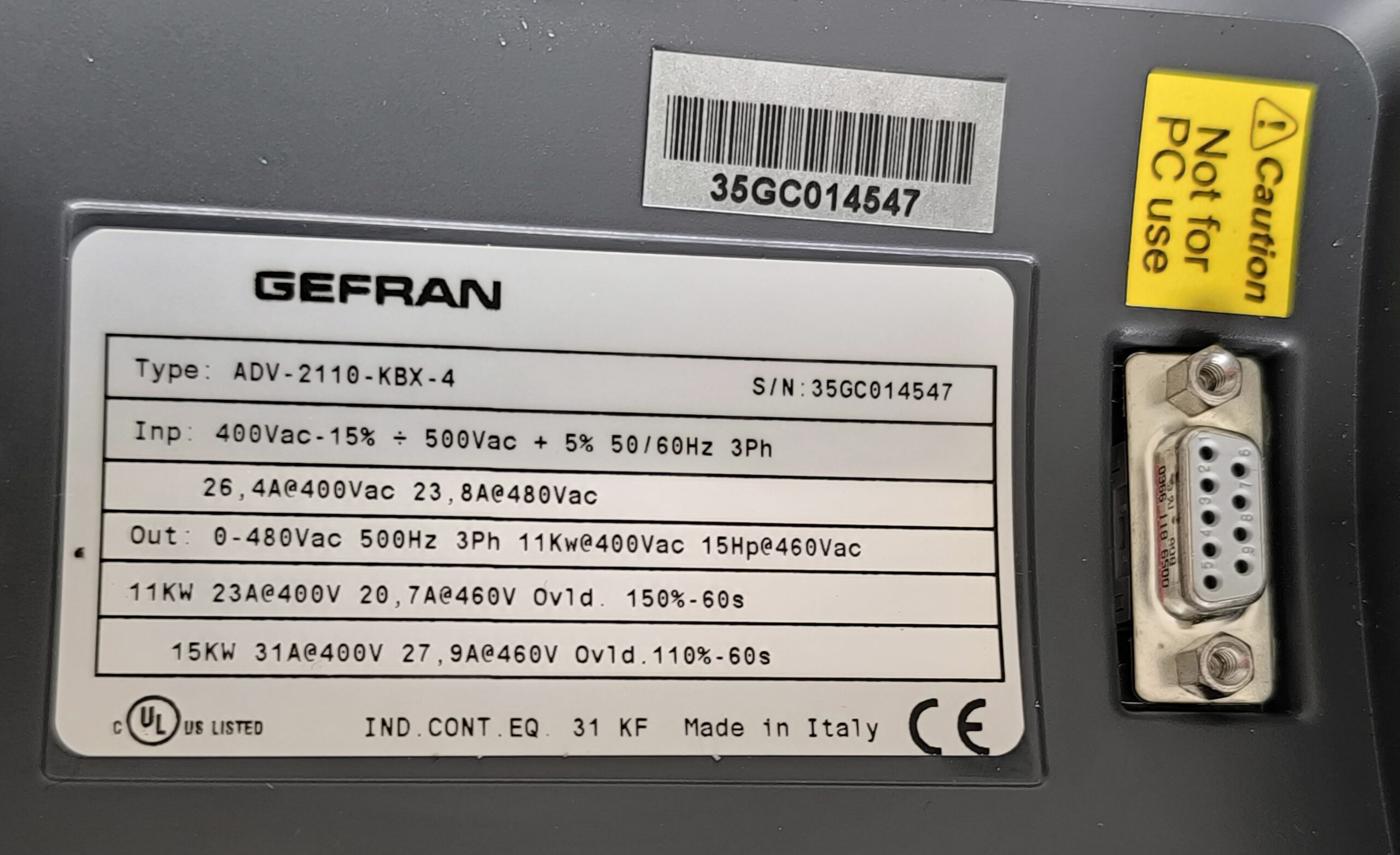 15kW 31A@400V 27,9A@460V